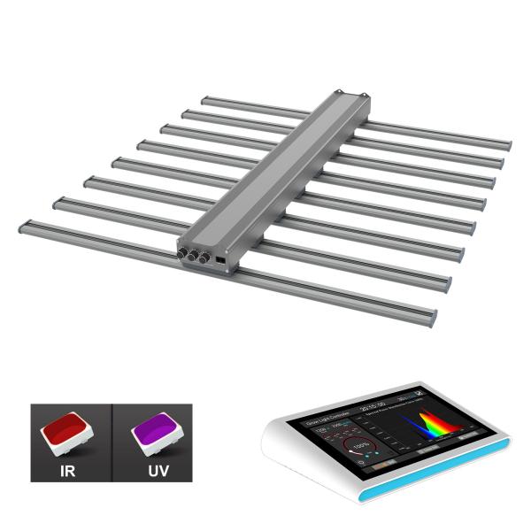 Different from others independent UV+IR light bars, MAX Pro led grow light 8 bars are with UV and IR diodes layout to provide uniform light output. And UV and IR diodes have their own individual dimmer knob, grower can freely adjust UV and IR dimming level from 0-100%.